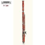 Fagote "Moosmann" mod. 200, Solista, profissional, com estojo, un. utiliza maple da Bósnia-Herzegovina, temperado por muitos anos. O Moosmann 200 é envernizado em mogno, laca polida francesa, 27 chaves de prata alemã, todos os furos para os dedos têm tubos de borracha dura, projetando-se para dentro do furo; 9 rolos, 2 tudéis excellent série, acessórios, estojo compacto..